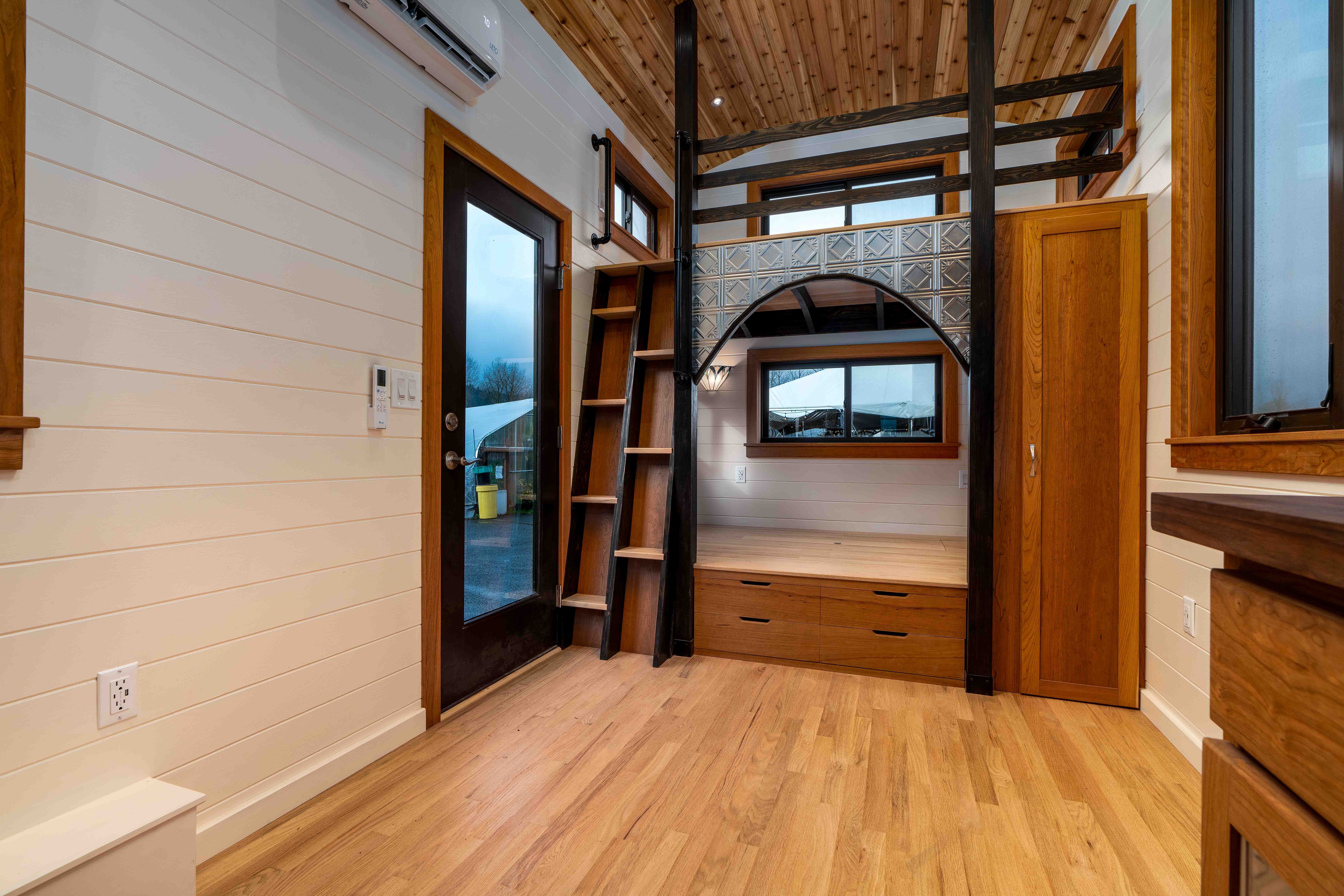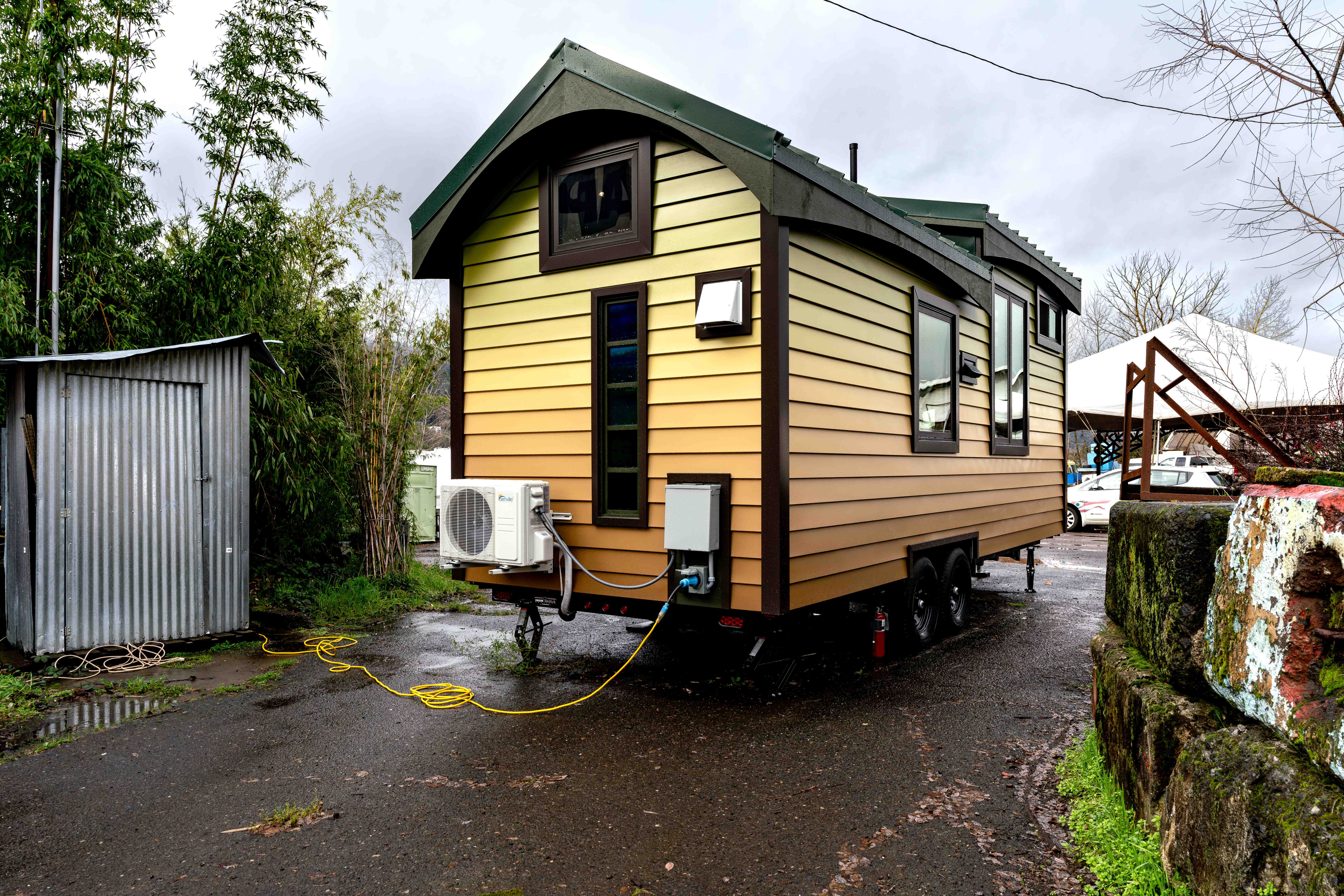 - Mini split heat pump, mini tank electric water heater, bathroom exhaust fan, and 50A power inlet