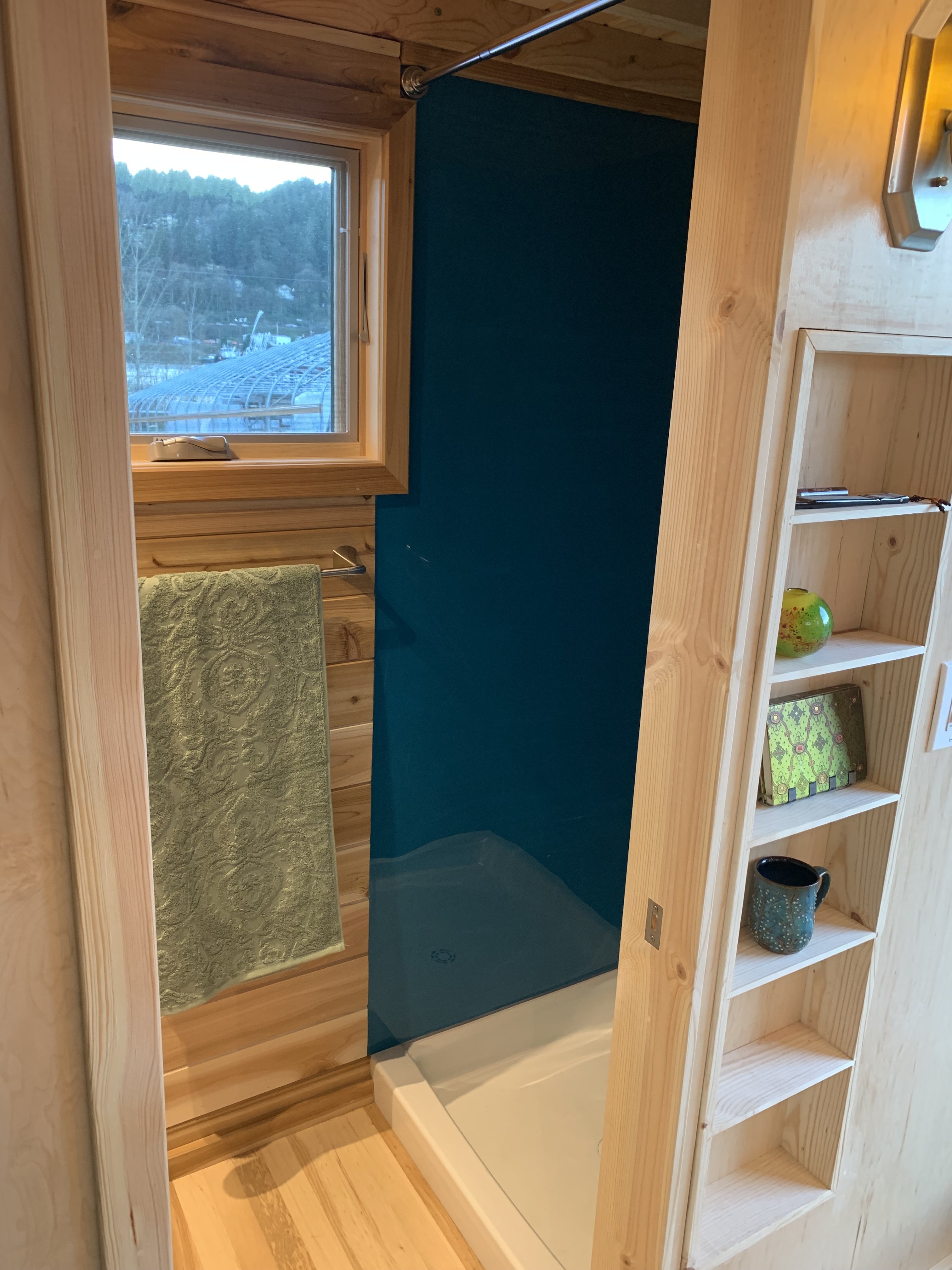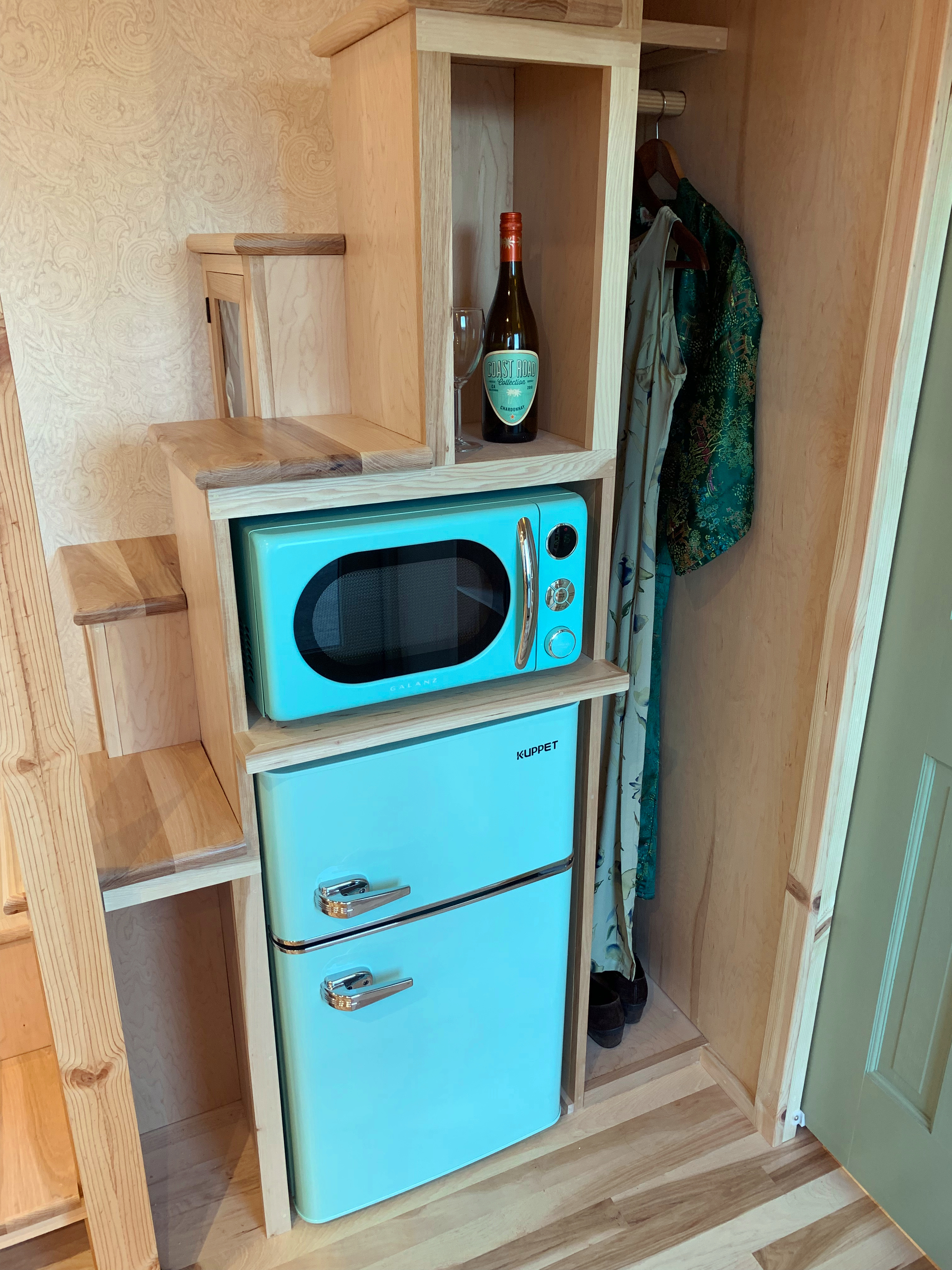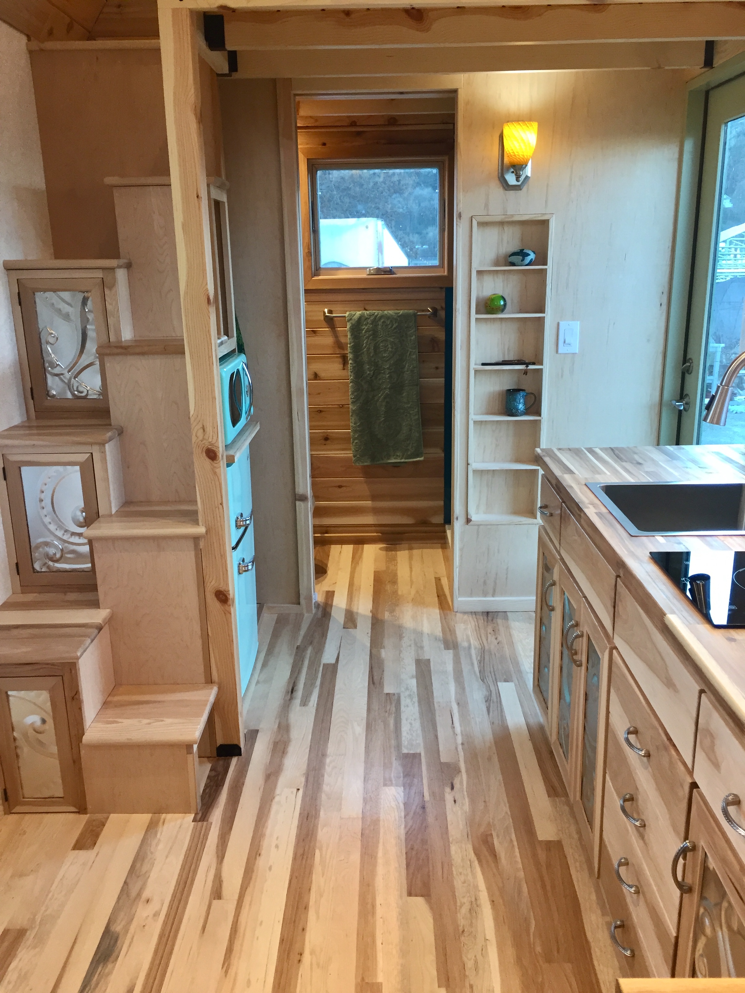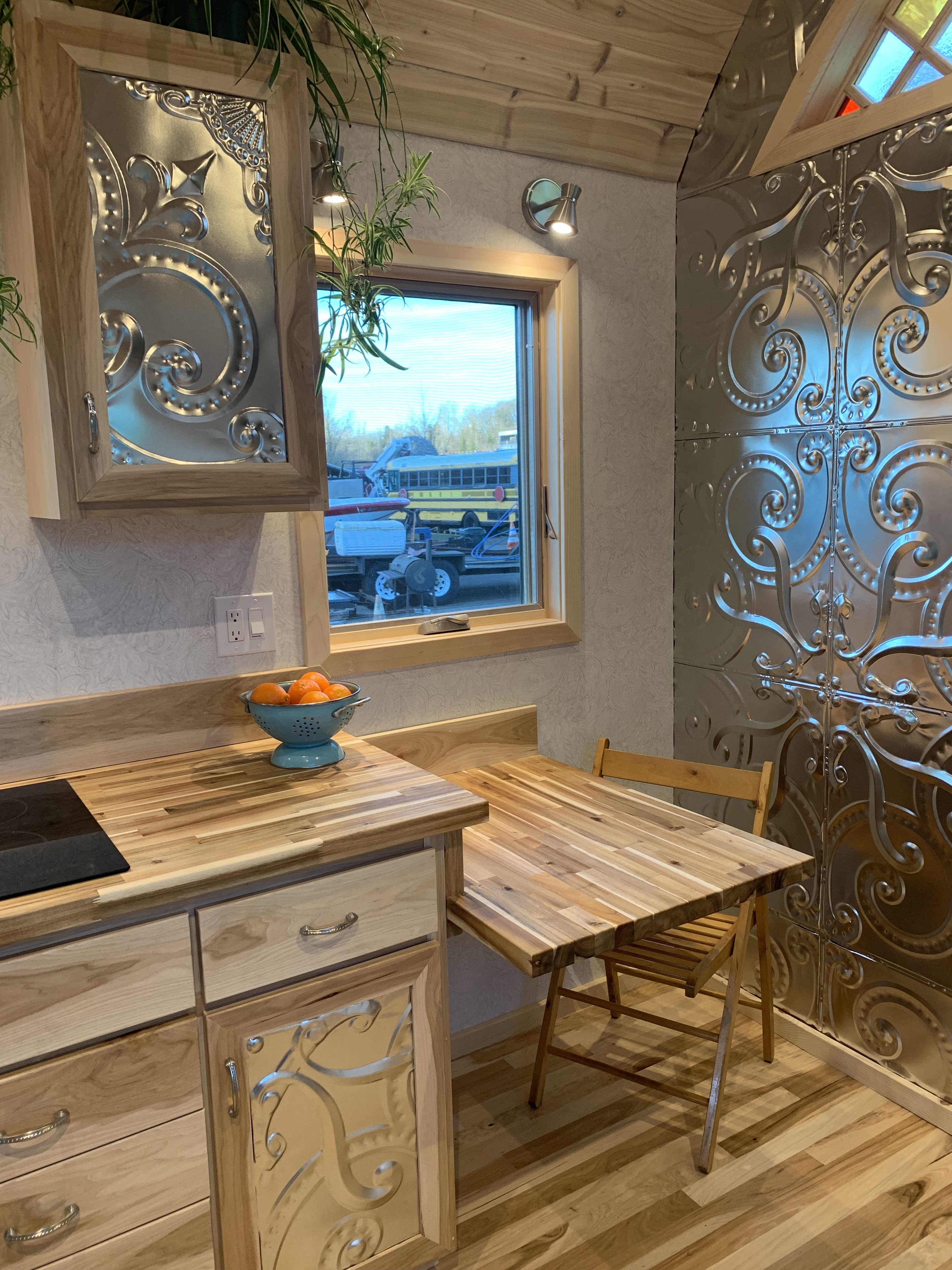 Manic Pixie’s first microcathedral answers the question of whether you can fit a bedroom, bathroom, and kitchen into a 16’ tiny home and still have that cathedral feel. (You can.) This house features:
